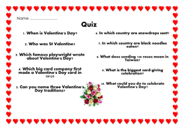 Feb 11, 2021 · valentine's day picture puzzle quiz answers 2021.valentine's day picture puzzle quiz from videoquizhero with answers 100% score, latest update 2/2021. Where do they give chocolates on valentine's day? To get you in the mood, we've prepared a special valentine's day puzzle for you. This video is about a quiz called valentine's puzzle or valentine day picture puzzle quiz from videoquizhero website.this quiz contains 20 questions and each. Who is more likely to treat themselves on valentine's day?